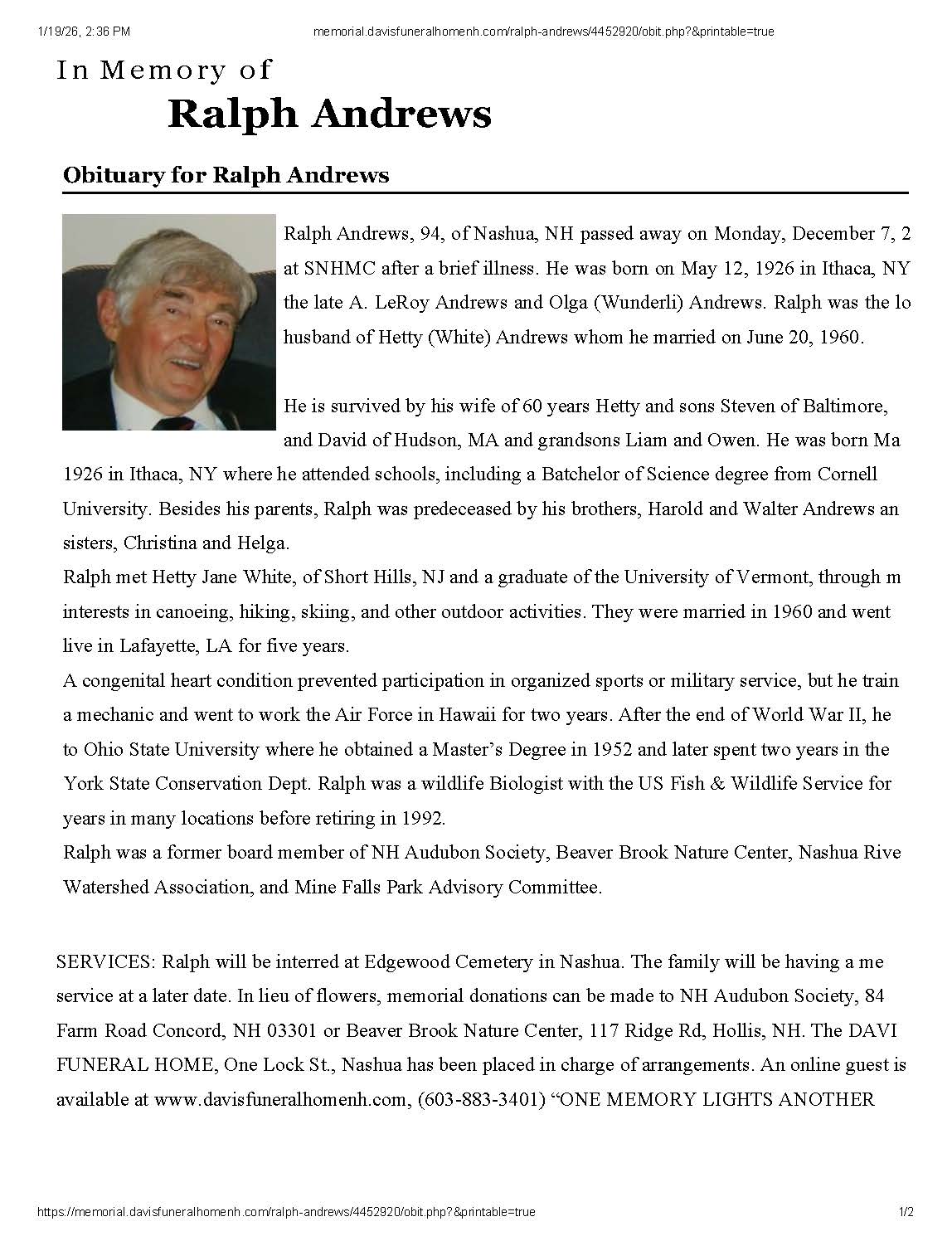 Andrews, Ralph "Frenchy" (1942') - December 7, 2020