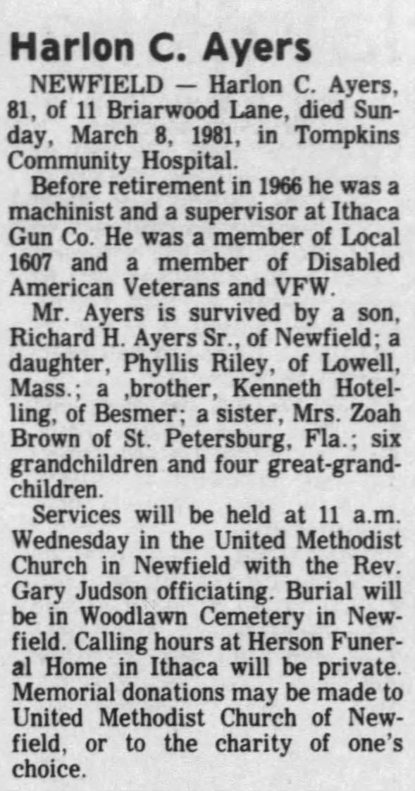 Ayers, Harlon C. "Clinton" (1960') - March 8, 1981